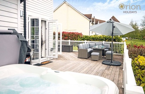 Lovely & spacious 3 bedroom ‘Turret New England' style holiday cottage overlooking Windrush Lake, furnished & equipped to a high standard. The open plan living area leads to a well furnished wrap around sundeck with lake views, Hot Tub, Gas BBQ & seating.