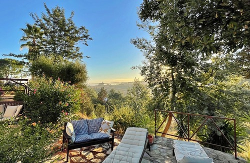 Experience relaxation and peace with family and friends in one of the most beautiful places in Europe, the Costa Vicentina Nature Park on the Atlantic coast. Surrounded by cork oaks and olive trees, this lovingly renovated villa in Portuguese style is located on a 3 hectare plot. The spacious main house for up to 7 adults has four bedrooms (3 double rooms and 1 single room) and two bathrooms with shower/toilet, a spacious living and dining area with gallery and fireplace, an open kitchen in country house style, a shady terrace and a separate area with a pool.