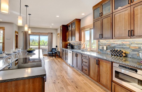 As you step inside, you'll be greeted by an inviting ambiance that combines modern elegance with rustic charm. The home features a King Master Suite, three additional Queen guest rooms, and a unique bunkroom with twin over twin bunk beds, ensuring ample sleeping arrangements for everyone. Enjoy fantastic mountain views from the comfort of your living area, complete with a cozy gas fireplace that sets the perfect mood for après-ski gatherings.