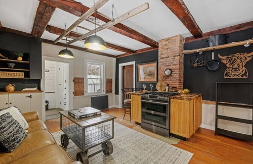 Our cheerful, sumptuously decorated 1BDR farmhouse apartment is a trip back in time to 1790s New England—with fast Wi-Fi, a California King, and granite countertops, of course! Relax in our soaking tub with views for days—horses, mini cows, and potbelly pigs wandering peacefully outside. Ask us about private yoga offerings, trail rides, and other extras for a tailored, extra-memorable stay.