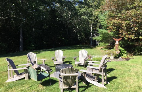 High Point is a light filled 3 bedroom shingle style contemporary on a quiet peninsula in beautiful Camden, Maine with ocean access and a warm, comfy summerhouse vibe. It is very private on 3 acres with a right of way to the shore, yet close to town. Camden is “where the mountains meet the sea”. Mount Battie state park on Penobscot Bay is a mile from the house. This is our primary home and is very comfortable with 3 spaciius bedrooms and a large well equipped kitchen that opens on to a south facing deck with a hot tub and outdoor shower. There are extensive grounds and gardens with a pathway to the shore with Adirondack chairs perfect for relaxing and watching boats on the Bay.