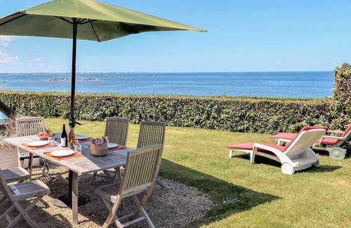Large, cosy single-family house "Les Romarins". 5.5 km from the centre of Plouescat, 15 km from the centre of Lesneven, 50 m from the sea, 200 m from the beach, direct access to the beach. Private: property 700 m2, well-kept garden lawn and wildlife garden. Motor access (50 m via unmade road). Parking (for 2 cars), single garage. Supermarket 4 km, restaurant 4 km, bakery 3.5 km, sandy beach 200 m. Marina 2 km, golf course 6 km, sailing school 4 km, walking paths from the house 20 m. Nearby attractions: Meneham 20 km, Roscoff (et jardin Botanique) 23 km, Morlaix 35 km, Oceanopolis Brest 60 km.