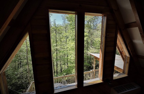 There is a king bed in the loft. When it comes to secluded cabin rentals in Red River Gorge KY, this is a wonderful cabin to see the seasons at their best. The cabin is equipped with a washer/dryer, 1 1/2 bath and a great wrap around porch with a hot tub. We have Wi-Fi also. The hot tub on the deck allows you to enjoy the wooded nature that surrounds you. There is a great fire pit area for those chilly evenings. It has easy access for all vehicles and motorcycles.