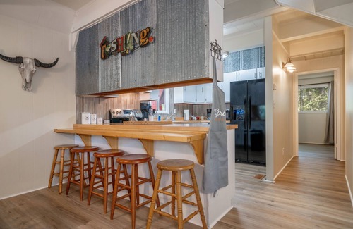 This updated two story 4 bedroom 2 bath A-frame is fully furnished with comfort in mind.
