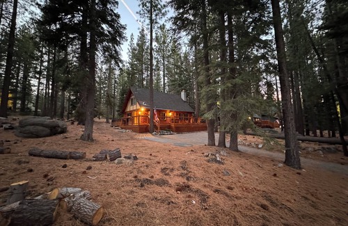 This gorgeous property is a 3BR/2BA log home nestled in a quiet, wooded neighborhood. High-pitch roofs, sunny deck, stone fireplace, natural cherry floors, and exposed logs and beams - all polished with years of love & great times. The home features 1 king bed, 1 queen bed, 1 bunk bed, and 1 futon, perfect for families or groups of friends. With 2 bathrooms and a cozy living room with a large stone fireplace, guests will feel right at home. Enjoy amenities like WiFi, a spacious deck, hot tub, firepit, and all the streaming services during your stay. We'll be available to answer any questions, and assist with your enjoyment of Tahoe, throughout your stay.