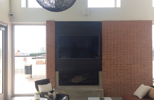 There is TV, stereo, DVD player, as well as both elevator and staircase access.