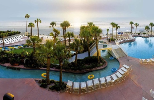But the amenities don’t stop there. Stunning indoor and outdoor pools beckon for you to come out and play. While, the lazy river, water slide, special aquatic play areas, mini golf, pool tables and game room will endlessly entertain your kids. Hit the beach, splash in the surf, or simply lay back and relax on the plentiful beach chairs. Both the Daytona Beach Street Pier and the Ocean Walk Village and Shoppes are within easy walking distance of the resort. Other nearby area highlights include the Peabody Auditorium, Daytona Lagoon, Halifax Historical Museum, and the famed Daytona International Speedway. And of course, the world famous Orlando theme parks of Disney World, Universal Studios, and SeaWorld are just a little over an hour away. Family vacationing is at its best at Wyndham Ocean Walk.