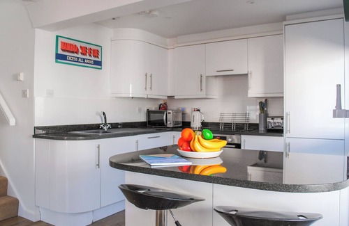 Yardarm is a delightful, spacious period town house, situated on Devon Road in Salcombe, within easy access of Courtenay Park, Salcombe town centre and its famous waterfront. The property sleeps eight people in four bedrooms with one family bathroom, shower room, and a further shower cubicle and w.c. with basin in the utility room. There is a contemporary kitchen, and a light and airy lounge/dining room, as well as a utility room with a washing machine and tumble dryer (plus shower). Outside there is off road parking for up to four cars, as well as a balcony with patio table and four chairs, accessed by the ground floor bedrooms. Note: One well-behaved dog welcome at an additional charge of £25.00.