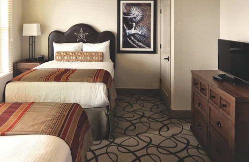 As part of a large ranch, rich with diverse wildlife and breathtaking scenery, Southwest style and modern architecture come together at this beautiful contemporary resort built of natural stone with wood accents. Your whole family will relish the on-site outdoor activities here. Terraced slopes lead down to the swimming pool complex which includes a family pool with water slide. Keep up your exercise routine in the small fitness center, or just relax on the covered patio. Whether you seek a relaxing respite or an outdoor adventure, this resort delivers it all!