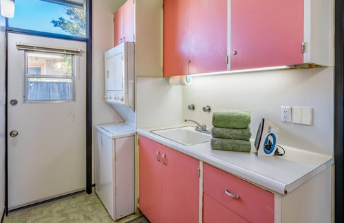 Kitchen is fully stocked. Dining area seats 6 easily. Stackable washer and dryer are located in the laundry room and available for you to use.