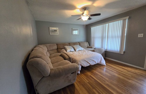 This 3-bedroom ranch style house is perfect for your escape to Maryland Heights. With 3 lovely queen beds, this amazing property offers a welcoming atmosphere for guests with plenty of seating. You'll find everything you need, from a washing machine to heating, AC, and WiFi. The 2 bathrooms ensure convenience for everyone. The full bathroom is off the main highway. Plus, there's an additional space with a cozy living room and a sofa bed. A great place to call homebase while you're away, we hope you enjoy your stay.