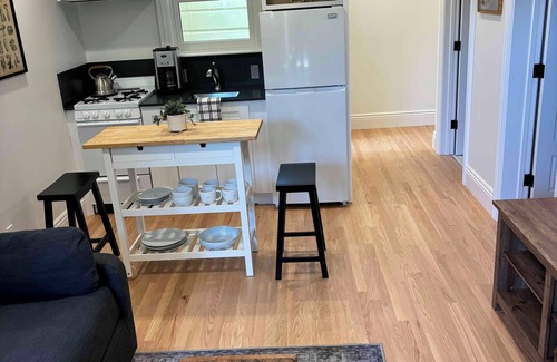 The home was designed to feel like a luxury top tier hotel suite, with the coziness of a cottage in Provence. Fluffy towels, fresh new bedding, all the kitchen necessities you could need, tv, internet, and your own washer & dryer.
