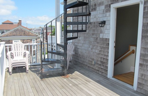 This extremely desirable property boasts two spacious bedrooms, two and a half bathrooms, kitchen, dining room, living room and a half bath. The dining room, living room, kitchen and half bath occupy the first floor, which is the perfect space for entertaining family and friends. The living room includes a large sectional sofa, television, DVD player with a few movies and board games for an occasional rainy day. A large hall closet keeps your beach gear at the ready. The kitchen is fully loaded and includes stainless steel appliances, including dishwasher and microwave. The property is graced with hardwoods and ceramic tile throughout. The second floor contains a bedroom, a full bath and utility closet with a stackable washer and dryer. The third floor is essentially a private suite, with a bedroom and attached full bath. All bedrooms contain queen-sized beds. Ample closets and full dressers enhance each bedroom. And there are a few desks and chairs for those that need to “stay connected.” The pièce de résistance is the “fourth floor”…one of Newport’s most spectacular roofdecks, offering amazing views of the harbor and bridge. Some of the finest sunsets are experienced here, bar none. A quaint courtyard patio with grill, just outside the back door, completes the package.
