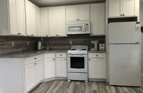 This, open floor plan, property has been completely remodeled and updated including a brand new kitchen. The kitchen has all new appliances. This place has wall to wall ''wood'' tile that gives a coastal boardwalk feel. The guest will enjoy a spacious master bedroom with a large walk in closet and a gorgeous spa like bathroom. The master bedroom has a queen and a trundle bed. The living room has a comfortable king pull out memory foam sofa bed. If you need to work, there is a full desk. The large screen smart TV is ready for you to sign into any of your streaming accounts.