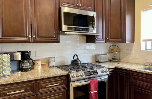Our home has 9ft ceilings and feels cozy and spacious at the same time. Our A/C unit is Kickin and keeps you cool in the summer. Our 70" Smart HDTV in the living room is great for watching yourmovies and sports. Our couches are leather and recline with side buttons. Our kitchen is spacious with a full size fridge and a snack drawer for the littles. Every room in our home including the kitchen and living room have ceiling fans. Our Backyard is enclosed with plenty of seating and a nice big grill with a pre-filled propane tank is ready for grilling!