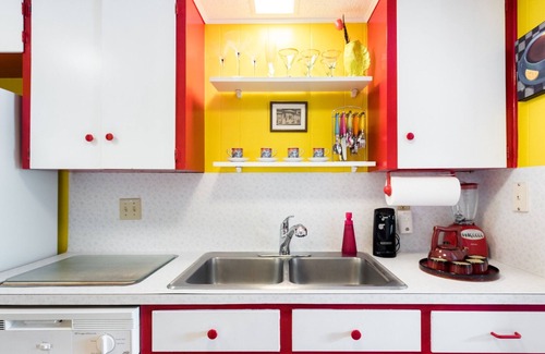 Zilker Park Place is a multicolored two-story townhouse jam-packed with original art and loaded with all the modern amenities. Wake up in a comfy bed and head just around the corner to Barton Springs for a swim or Zilker Park for a morning jog, then cook a meal in the fully-equipped kitchen.